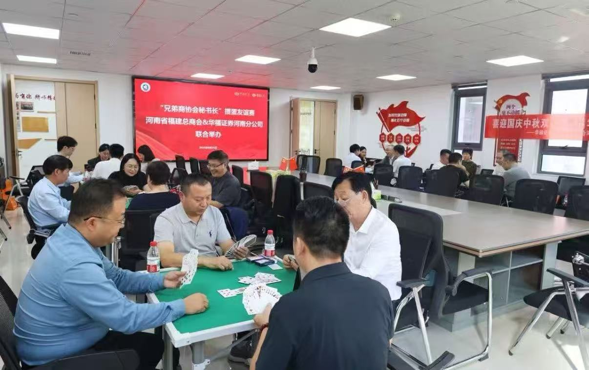 为加强各兄弟商协会之间的沟通与联系,丰富秘书处工作人员的文体生活,近日,由河南省福建总商会与华福证券联合主办的“兄弟商协会秘书长掼蛋友谊赛”在郑州成功举行。河南省宁波商会秘书长胡小军受邀出席,与来自省豫宛商会、郑州市中小企业协会、省广东商会、省川渝商会、省钢贸商会、省晋商会、省科技装备商会、省坚果炒货商会、省贵州商会、省浙江商会、省锁具协会等二十多家省级兄弟商会、行业协会的秘书长们同场竞技,共叙情谊。